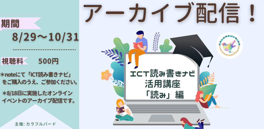 📘「ICT読み書きナビ」活用講座~「読み」編~【アーカイブ配信】 「読み書きを助ける」ICTの使い方を一緒に学んでみませんか? カラフルバードではこれまで、『ICT読み書...