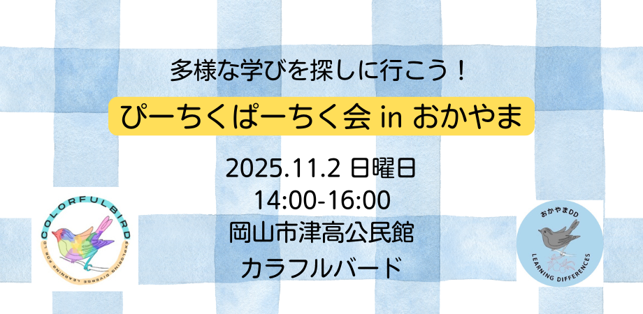 🕊️ 多様な学びを探しに行こう! ぴーちくぱーちく会 in おかやま 学習障害(LD)にまつわるあれこれを、当事者やLD児の保護者、支援者など、LDに関心のある方同士で「ぴー...