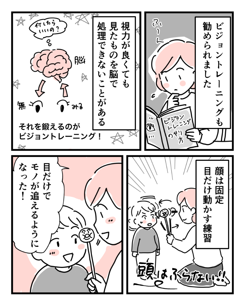 ビジョントレーニングは、目の運動機能を活性化することで、脳に刺激を与えるという考え方に目からウロコでした。
