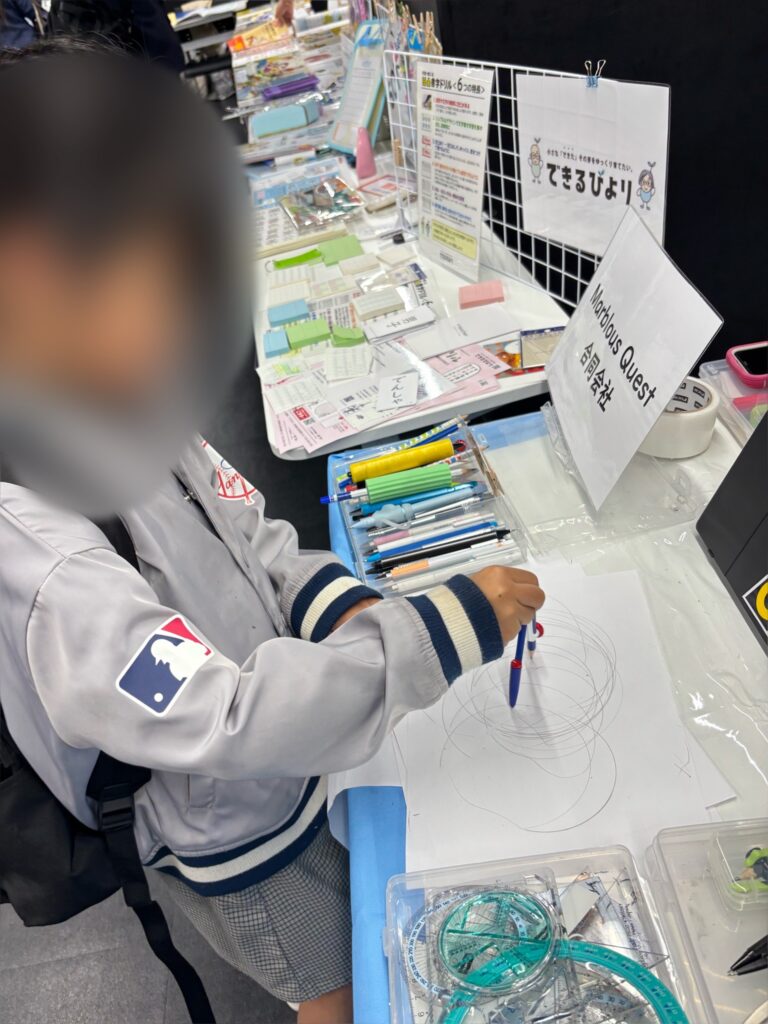 特にコンパスに夢中で、色々なコンパスで円を描いて、使いやすいものを探していました。