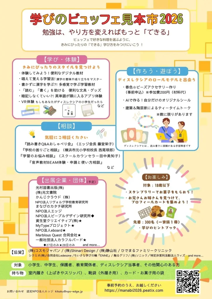 認定NPO法人エッジ主催の「学びのビュッフェ見本市2026」が開催されました。